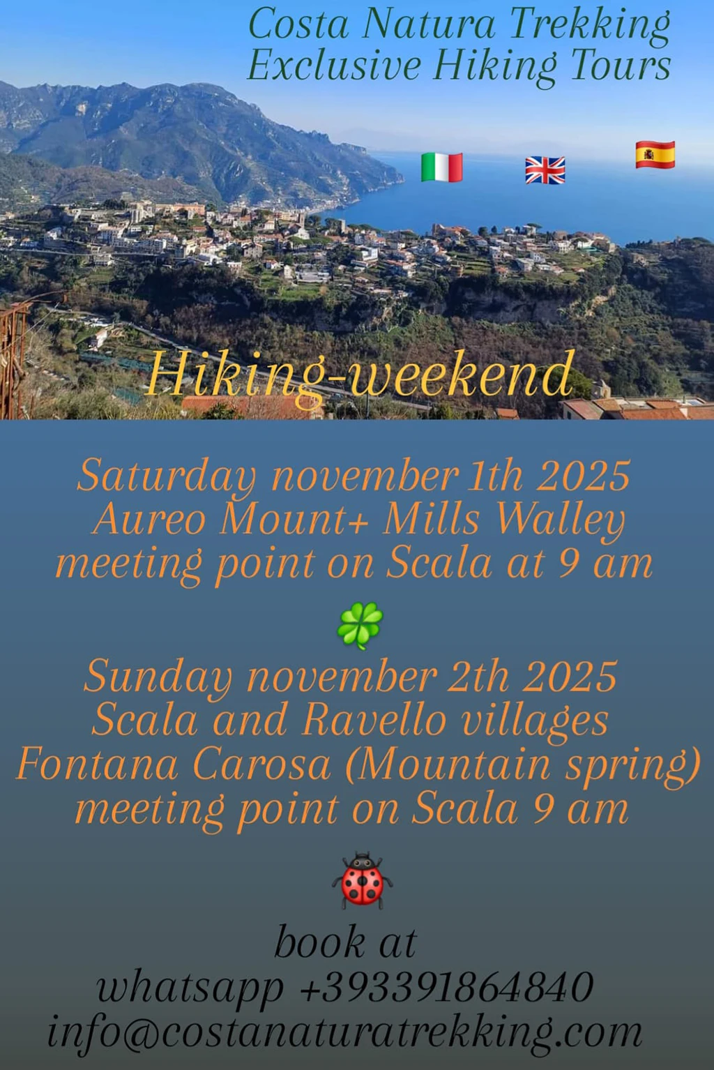 A Journey Between Sea and Mountains 🌿 Experience the magic of autumn on the Amalfi Coast!Join Costa Natura Trekking for an unforgettable weekend of nature, colors, and discovery during the All Saints’ holiday. Walk through hidden paths, ancient forests, and breathtaking coastal views — where the sea meets the mountains and every step tells a […]